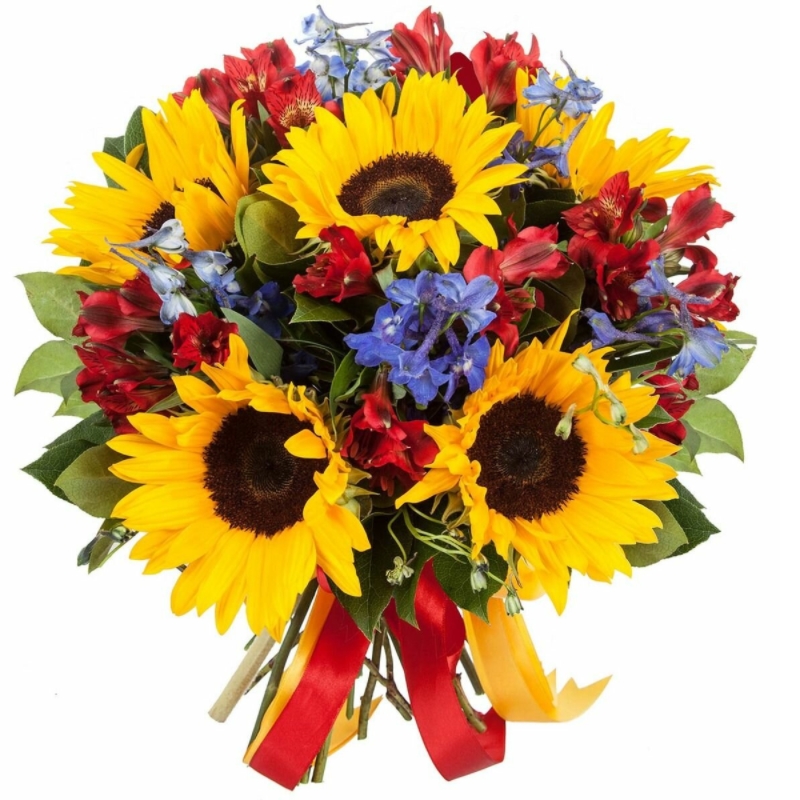 Альстромерия 5 шт., Дельфиниум 5 шт., Подсолнух 5 шт. |