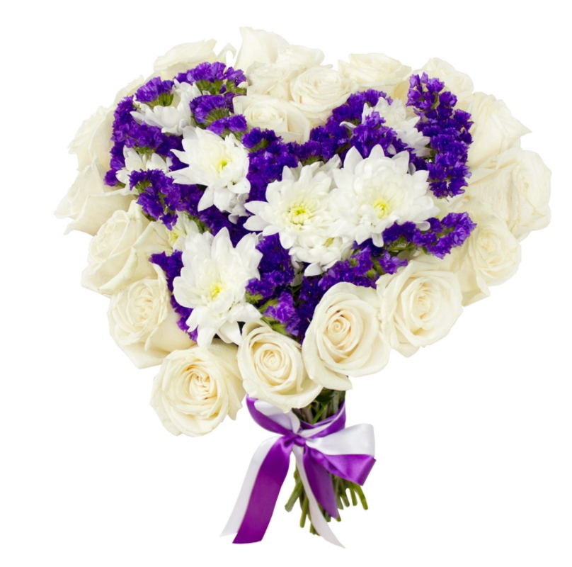 Букет сердце из роз и хризантем " Маркиза ангелов"