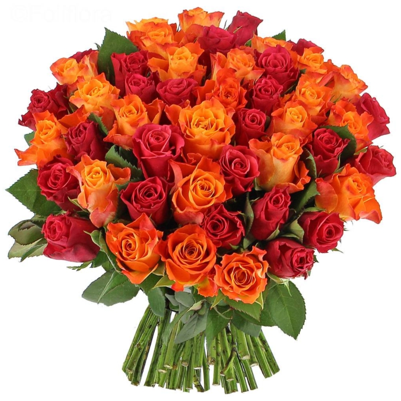 Букет из 51 красной и оранжевой розы